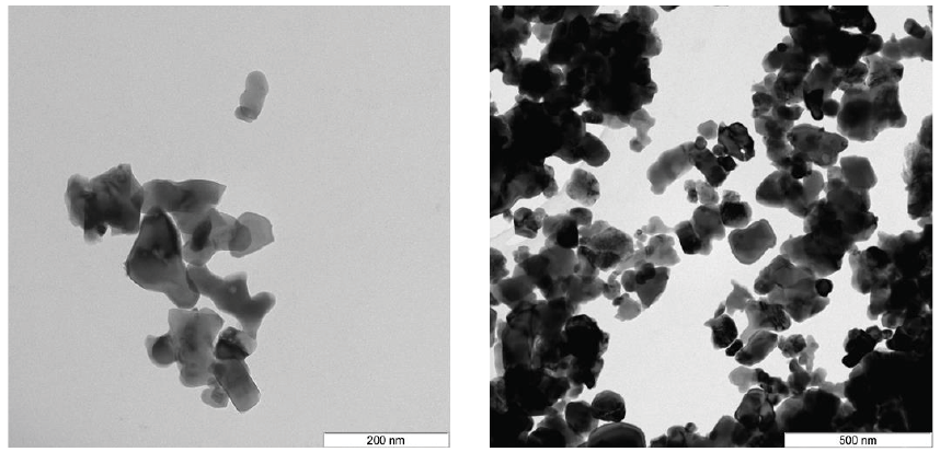 The morphology of Co3O4 nanoparticles was characterized by TEM. The Fig. 2 shows the TEM images of the sample prepared at 600 ºC. The images reveal nanoparticles with size ranging from 50 to 100 nm, which is in conformity with the calculation of average crystallite sizes from XRD patterns.