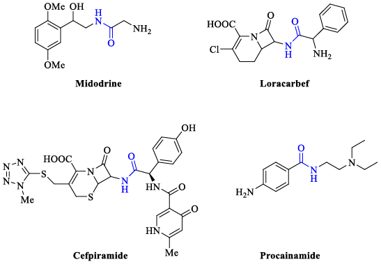 The compounds containing amide moiety are one of the most significant functional structures in organic chemistry and biology [1]. The amide bond is extensively present in the most of pharmaceutically interesting materials, drug candidates and natural products, as well as in majority of industrial compounds, including detergents, polymers and even lubricants [2, 3]. Also, this bond constitutes the backbone of the proteins, peptides and other biologically-related molecule structures [4, 5]. Recent surveys revealed that 25% of registered drugs have at least one amide bond in their structures and therefore amidation reactions are the most common reactions in the synthesis of pharmaceuticals. Some examples of these drugs are shown in Fig. 1 [6]. Usually the synthesis of amides can be performed by the reaction of amines with carboxylic acids [7-9] or other derivatives including carboxylic salts [10], esters [11,12] and halides [13]. Various methods have been developed for amide bond synthesis such as rearrangement of aldoximes [14], direct coupling of amides with aryl halides [15], transamidation of amides with amines [16], hydration of nitriles [17,18], aminocarbonylation of aryl halides [19] and Ugi reaction [20]. New efficient synthetic protocols with catalytic procedures have been expanded for oxidative amidation of alkylarenes [21], alcohols [22] and aldehydes [23] with various amine derivatives and amine salts that have important advantages from green chemistry and atom economy viewpoints [24-30]. Recently, using from N-bromosuccinimide as an oxidant for the preparation of amides from aromatic aldehydes with amines has been proposed [23]. Bantreil et al. reported a direct synthesis method of benzamides using copper salt from benzyl alcohols [31]. Also, Wang et al., utilized tetrabutyl-ammonium iodide and FeCl3 as a co-catalysis for direct amidation by using free amines and methylarenes in water by tert-butyl hydroperoxide as an ecofriendly benign oxidant [21, 32-36]. Considering the various methods used highly hazardous reagents or contained poor atom efficiency, so it was necessary to observed from both environmentally friendly and atom economy points of view. Acidic materials such as solid acids and acidic carbons are cheap and environmentally benign for direct amidation without side problems [37]. Recently, Polshettiwar et al., synthesized fibrous nano-silica (KCC-1), with the high surface area (typically >700 m2/g), large pore sizes [38], low density, ease of surface modification and weak toxicity with well biocompatibility [39]. Also, these dendritic porous nanocomposites have been successfully used as suitable heterogeneous nano-silica catalysts for several organic synthesis [40-44] and therapeutics [45]. Folic acid (FA) is a well-known compound (vitamin B9) which generally known as a biological molecule. FA is essential in cell division, nucleic acid preparation and cells metabolic [46].