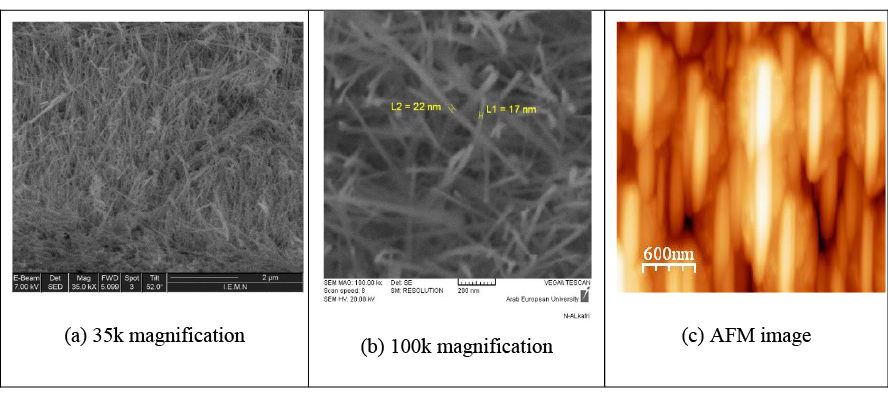 The SEM (Figs. 4 and 5) and AFM images confirm that the growth as nanowires (was mentioned above ) in TEM studies.