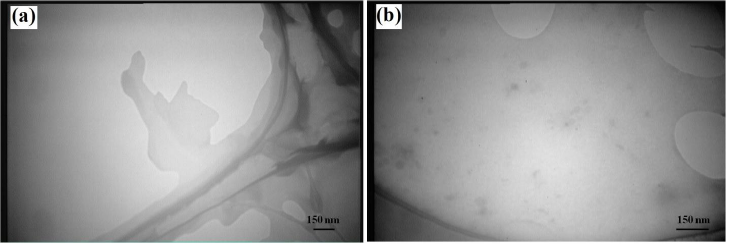 As shown in Fig. 5 the TEM micrographs of the surface of produced samples indicate the transparent silk-like morphology of graphene nanosheets.
