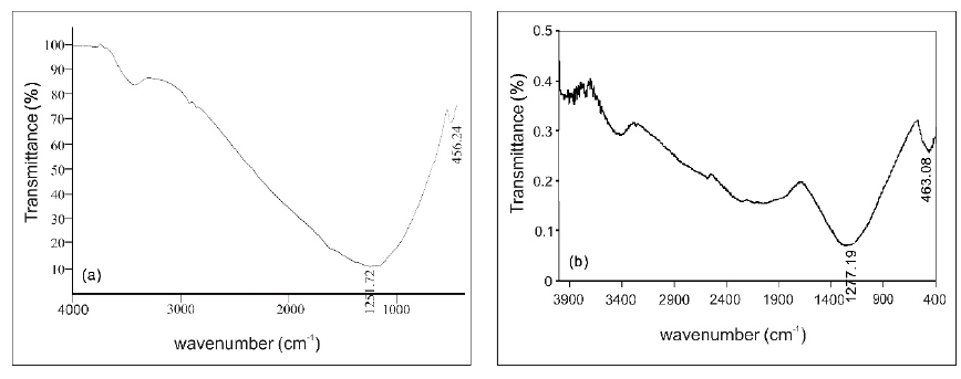 The synthesized CdO NPs was also characterized by FT-IR spectrum (Fig. 4a). The broad peak with low intensity in the region of 3200-3400 cm-1 can be assigned to the stretching vibration of the hydroxyl group (OH) of the adsorbed water. The peak at around 1251 cm-1 can be detected the residual organic compounds. The peak appearing at 456 cm-1 is also attributed to the Cd-O stretching mode in the lattice.