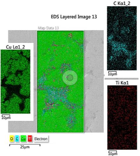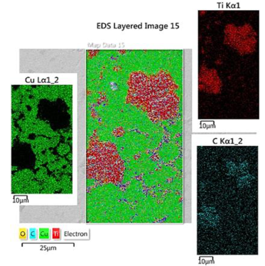 5. The FESEM technique revealed that the micro size TiC particles were strongly embedded in the Cu matrix. On other hand, the nano-size TiC particles are well distributed amongst Cu powder particles and with them.