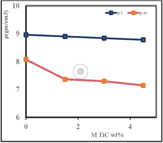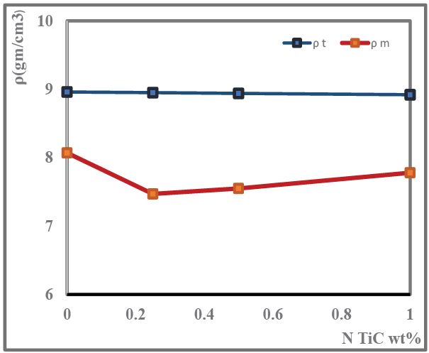 ρCu, ρTiC: Theoretical density of (Cu, TiC) (g/cm3) respectively.