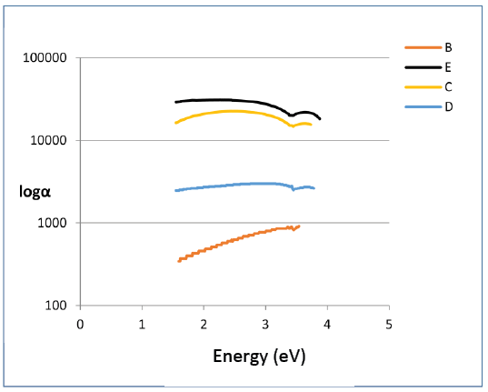 Fig. 3 represent the relationship between Log(α) as a function of energy, The data of absorption coefficient lead to obtain on the energy band gap which is depend on the theory of Bardeen et all[14]: