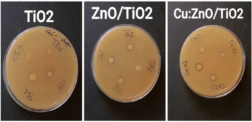 Antibacterial activity of TiO2, ZnO/TiO2, Cu: ZnO/TiO2 NPs Measurements