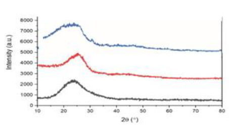 XRD patterns of SBA-15, MCN, and MCN-Ni prepared nanocatalysts are shown in Fig. 8 . According to SBA-15, a broad peak at 2 was observed at about 23 °. This peak is referred to as the SBA-15 precursor amorphous silica walls. [40] The XRD logo of the sample loaded with Ni was similar to the MCN base, except that it is a negligible peak at approximately 31o. This originates from Ni nanoparticles [19], however, because Ni nanoparticles are distributed on a small scale without any aggregation, no definite peaks have been observed. From the XRD results, it can be stated that Ni can be well distributed through MCN support and there is no sign of accumulation. XRD analysis of these 3 samples shows that MCN and SBA15 did not undergo structural disruption after metal adsorption.
