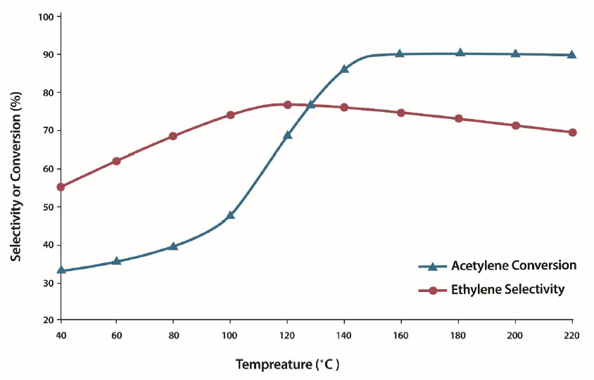 So the temperature rises again. A common behavior of current catalysts is to reduce the choice of ethylene due to acetylene conversion or increase in temperature. Therefore, in practice, two reactors with cooling operations are usually used to completely remove acetylene impurities during the ethylene feeding process, which are referred to as tail-end processes.[1-8]
