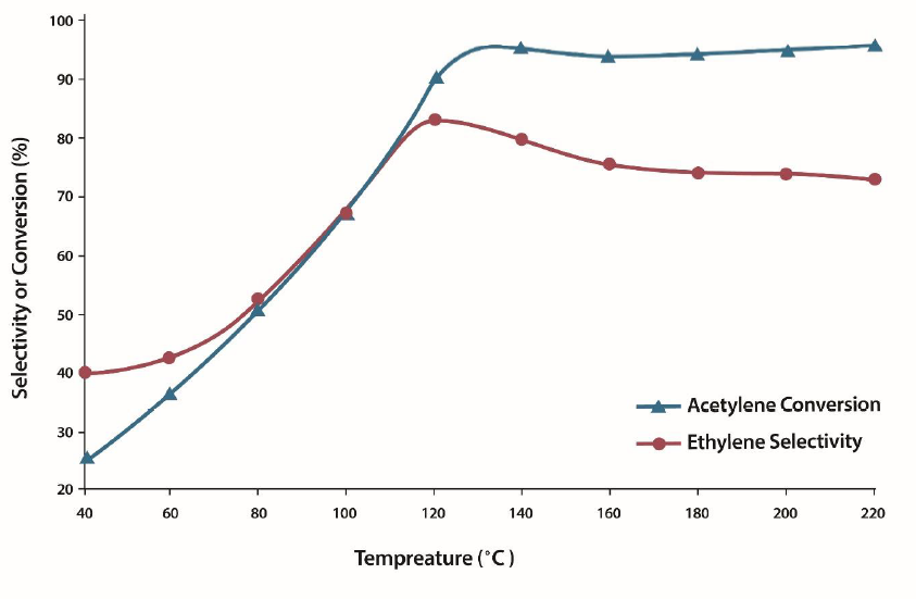 The synthesized sample could provide 96acetylene conversion and the ethylene selectivity of 83 which is an excellent performance.