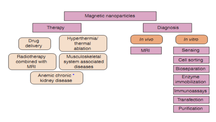 Magnetic nanoparticles are widely used in medical advances and therapeutic and diagnostic applications such as high-resolution magnetic resonance imaging (MRI), cell isolation, biosensors, hyperthermia, chemotherapy of special sites, repair of special tissues, and targeted drug delivery. In this regard, much effort has been made into the preparation of monodispersed magnetic nanoparticles and functionalization of the surface of these nanoparticles with biocompatible and water-soluble groups and target ligands (e.g. folic acid) [8].