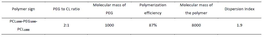 Various PCLx -PEGy-PCLx triblock copolymers can be synthesized depending on the choice of the molecular mass of the raw materials. In the present study, polycaprolactone (1000g/mol) and the molecular mass of polyethylene glycol (1000 g/mol) were chosen.