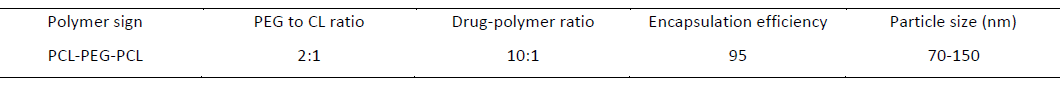 The following table summarizes the physicochemical properties of doxorubicin-containing PCL-PEG-PCL nanoparticles.