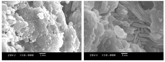 Images showed that with decreasing pH the sharp smoothness takes place i.e roughness decreases. The Fig represent the ZnO:ZnS-5:3 at pH 2.0,1.2 and 0.7 from left to right and observed that at lower pH pyramid shape becomes clear and it is evidence of Zinc blende (Sphalerite) structure.