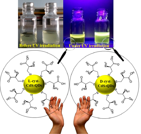 An overview of the prepared L- and D-cyst-CdS-QDs and their emission under UV light has been outlined in Fig. 1.