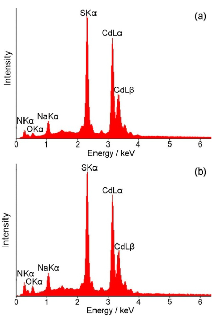 Energy dispersive X-ray (EDX) analyses of L- and D-cyst-CdS-QDs revealed the presence of Cd and S in the prepared L- and D-cyst-CdS-QDs (Fig. 4).